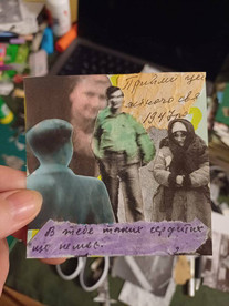 Розмальовуючи старі фотографії з сімейного архіву, я підбираю кольори відповідно до своїх відчуттів. Чи то одяг, чи то весь образ людини, всі ці елементи для мене відкриваються в процесі створення роботи. Беручи фотографію до рук, я ніби переміщаюсь в той день, в ті емоції, в той простір, де була зроблена фотографія. І по свої асоціативним сприйняттям я підбираю як кольори так і інші елементи.